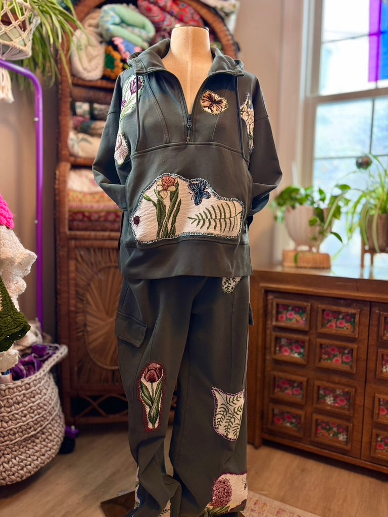 🌿Green Girl Era Lounge Set | Upcycled Floral Patchwork Cozy Loungewear with Pockets