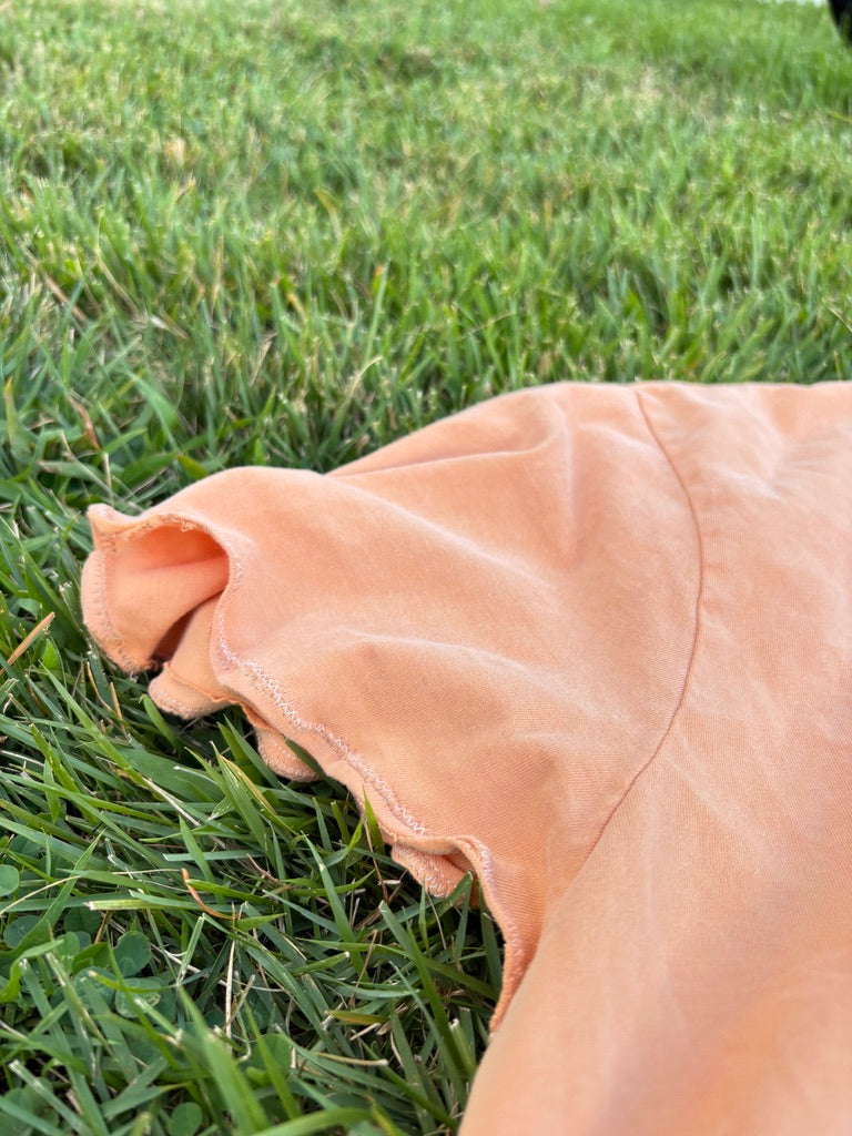 The Peaches Peaches Peaches Tee is giving ingΓ©nue at band practice energy β soft florals in the back, peachy graphic sass in the front, oversized and flowy like itβs too cute to care. Sweet but bratty, flower child but with a wink β itβs cottagecore meets coquette in a patchwork tee youβll never want to take off.